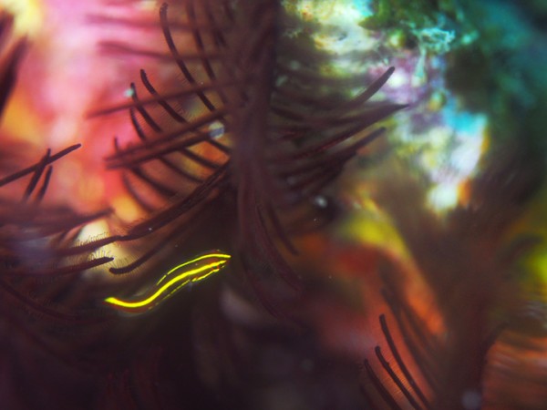 生き物はクマドリカエルアンコウ、オオモンカエルアンコウ、イロカエルアンコウ、ベニカエルアンコウ、ニシキフウライウオ、ウミテング、オオウミウマ、ハチジョウタツ、クダゴンベ、カスミオイランヨウジ、ネジリンボウ、ヒレナガネジリンボウ、ハタタテハゼ、シュンカンハゼ、ミナミハコフグ幼魚、タスジウミシダウバウオ、ムラモミジハナダイ、オトヒメウミウシ、ウデフリツノザヤウミウシ、ラオメネス・コルヌトゥス、オドリカクレエビ、アカホシカクレエビ等の確認と情報がありました。