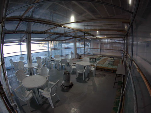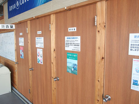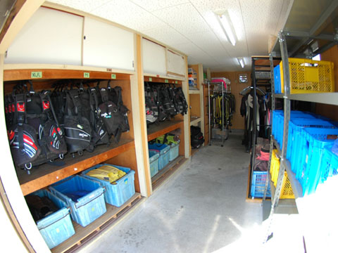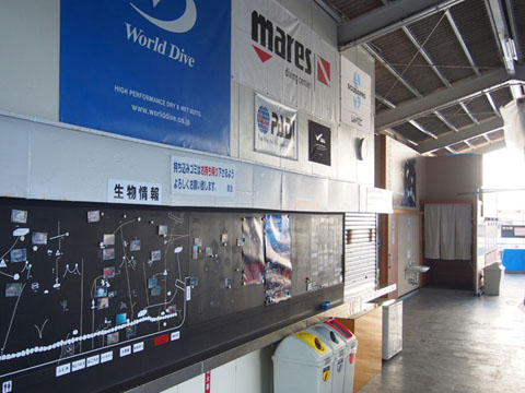 施設内はテーブル席、座敷席に分かれており、冬季には防寒用のビニールハウス内で暖かく過ごせます。トイレも広く、更衣室は個室で4部屋ございます。受付横には黒板に生物情報が書かれ、どなたでもすぐに確認いただけます。浜辺にはシャワー・お風呂が備えてあり、海から上がってすぐにご利用いただけます。器材洗い場・器材干し場も使いやすいように工夫を凝らし、日々改善に取り組んでおります。レンタル器材、シリンダーも各種取り揃えております。