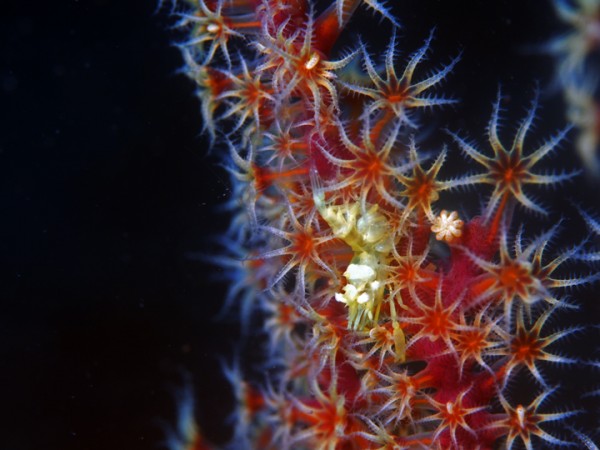 生き物はクマドリカエルアンコウ、オオモンカエルアンコウ、イロカエルアンコウ、ニシキフウライウオ、カミソリウオ、ウミテング、タカクラタツ、ミジンベニハゼ、ネジリンボウ、ヒレナガネジリンボウ、ミホノハゴロモハゼ、ヒレナガハゼ、ジョーフィッシュの仲間、ハダカハオコゼ、ニゲミズチンアナゴ、イッテンアカタチ、フタイロハナゴイ、ゲッコウスズメダイ、ツノザヤウミウシ、カンナツノザヤウミウシ、オオアリモウミウシ、フジタウミウシsp、エボシカクレエビsp、コブタヒラツノモエビ、トガリモエビ、ウミウシカクレエビ、フィコカリス・シムランス等の確認と情報がありました。