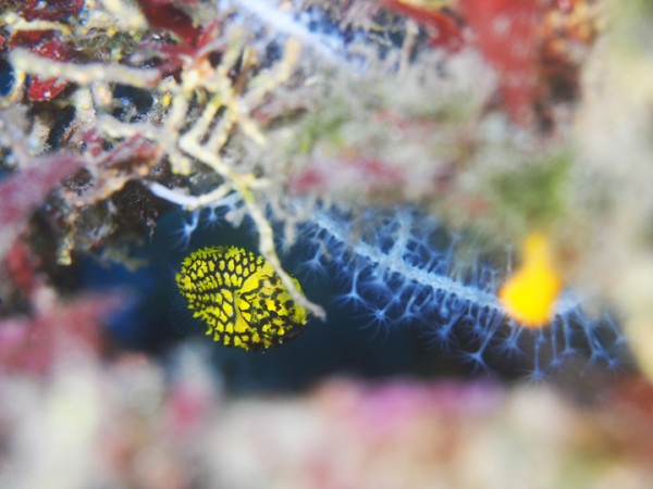 生き物はクマドリカエルアンコウ、オオモンカエルアンコウ、イロカエルアンコウ、ニシキフウライウオ、カミソリウオ、ウミテング、タカクラタツ、ネジリンボウ、ヒレナガネジリンボウ、ミホノハゴロモハゼ、ハダカハオコゼ、イッテンアカタチ、ニゲミズチンアナゴ、ゲッコウスズメダイ、ジョーフィッシュの仲間、フタイロハナゴイ、ツノザヤウミウシ、カンナツノザヤウミウシ、フジタウミウシsp、オオアリモウミウシ、トガリモエビ、エボシカクレエビsp、シノノメスベスベオトヒメエビ、ヨコシマエビ等の確認と情報がありました。
