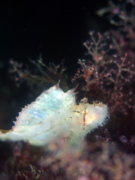 生物はクマドリカエルアンコウ、イロカエルアンコウ、オオモンカエルアンコウ、ヒレナガネジリンボウ、ネジリンボウ、ミホノハゴロモハゼ、ゲッコウスズメダイ幼魚、ハダカハオコゼ、クダゴンベ、ニゲミズチンアナゴ、ニシキフウライウオ、カシワハナダイ、フタイロハナゴイ、スミレナガハナダイ、オセミズタマウミウシ、ウデフリツノザヤウミウシ、カンナツノザヤウミウシ、ツノザヤウミウシ、フジタウミウシ属の一種、タマガワコヤナギウミウシ、ボブサンウミウシ、フィコカリス・シムランス、エボシカクレエビ属の一種、トガリモエビ、アカホシカクレエビ等確認と情報がありました。