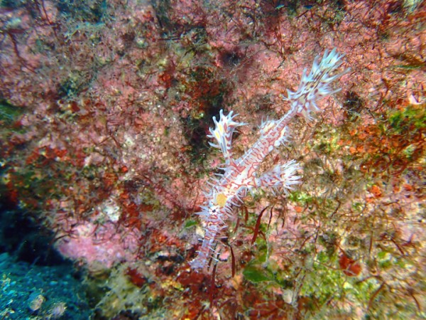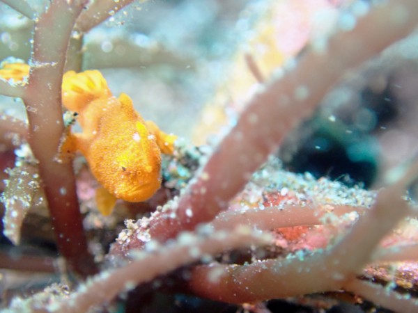 生き物はクマドリカエルアンコウ、オオモンカエルアンコウ、イロカエルアンコウ、ベニカエルアンコウ、ニシキフウライウオ、ハチジョウタツ、ミジンベニハゼ、ネジリンボウ、ヒレナガネジリンボウ、ミホノハゴロモハゼ、ニゲミズチンアナゴ、ゲッコウスズメダイ、ツノザヤウミウシ、カンナツノザヤウミウシ、オセザキホクヨウウミウシ、フィコカリス・シムランス等の確認と情報がありました。