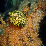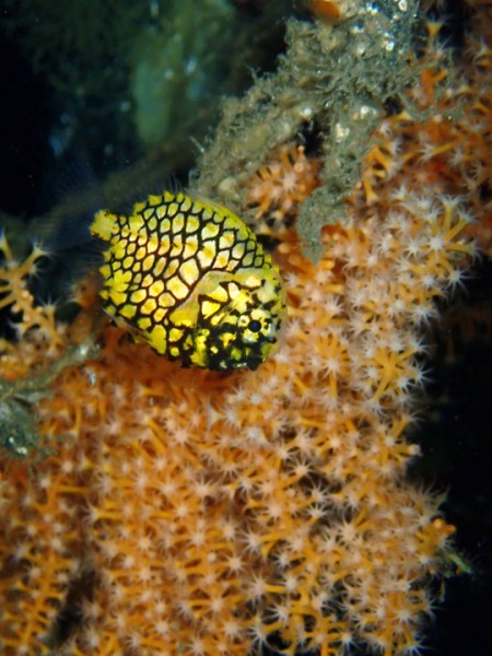 生き物はクマドリカエルアンコウ、オオモンカエルアンコウ、イロカエルアンコウ、ベニカエルアンコウ、ニシキフウライウオ、ハチジョウタツ、ミジンベニハゼ、ミホノハゴロモハゼ、ニゲミズチンアナゴ、ゲッコウスズメダイ、ウデフリツノザヤウミウシ、ツノザヤウミウシ、カンナツノザヤウミウシ、オセザキホクヨウウミウシ、フィコカリス・シムランス等の確認と情報がありました。