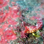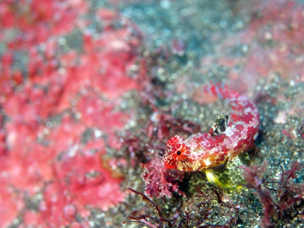 生き物はクマドリカエルアンコウ、オオモンカエルアンコウ、イロカエルアンコウ、ベニカエルアンコウ、ニシキフウライウオ、カミソリウオ、ハチジョウタツ、タカクラタツ、ミジンベニハゼ、ネジリンボウ、ヒレナガネジリンボウ、ミホノハゴロモハゼ、キザクラハゼ、スミレナガハナダイ、ベニハナダイ、ムラモミジハナダイ、ハダカハオコゼ、ミヤケテグリ、ゲッコウスズメダイ、ニゲミズチンアナゴ、ホタテエソ、ウデフリツノザヤウミウシ、カンナツノザヤウミウシ、ツノザヤウミウシ、ボブサンウミウシ、ウミウシカクレエビ、エボシカクレエビsp、トガリモエビ、ハクセンアカホシカクレエビ、アヤトリカクレエビ、フィコカリス・シムランス、ラオメネス・コルヌトゥス等の確認と情報がありました。