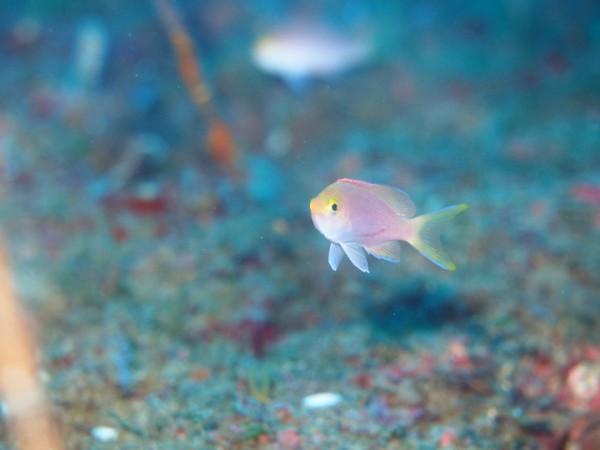生物はクマドリカエルアンコウ、イロカエルアンコウ、オオモンカエルアンコウ、ベニカエルアンコウ、ヒレナガネジリンボウ、ネジリンボウ、ミホノハゴロモハゼ、ハチマキダテハゼ、クダゴンベ、ベニハナダイ、スミレナガハナダイ、ハダカハオコゼ、ニゲミズチンアナゴ、ホタテエソ、ハチジョウタツ、ウミテング、ウデフリツノザヤウミウシ、カンナツノザヤウミウシ、ツノザヤウミウシ、フジタウミウシ属の一種、フィコカリス・シムランス、アヤトリカクレエビ等確認と情報がありました。
