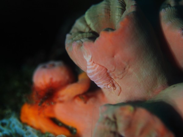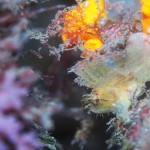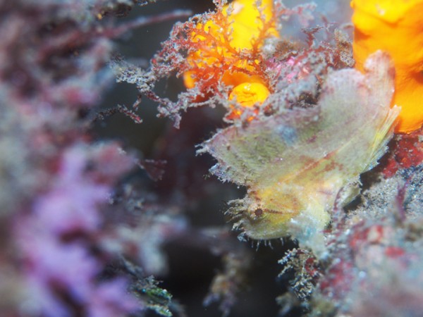 生き物はクマドリカエルアンコウ、オオモンカエルアンコウ、イロカエルアンコウ、ベニカエルアンコウ、ニシキフウライウオ、カミソリウオ、ウミテング、ハチジョウタツ、タカクラタツ、ミジンベニハゼ、ネジリンボウ、ヒレナガネジリンボウ、ミホノハゴロモハゼ、ゲッコウスズメダイ、アマミスズメダイ、ハダカハオコゼ、イッテンアカタチ、ニゲミズチンアナゴ、フタイロハナゴイ、ムラモミジハナダイ、ツノザヤウミウシ、カンナツノザヤウミウシ、ウデフリツノザヤウミウシ、オセザキホクヨウウミウシ、トガリモエビ、エボシカクレエビsp、キサンゴカクレエビ、キサンゴカクレエビsp、フィコカリス・シムランス等の確認と情報がありました。