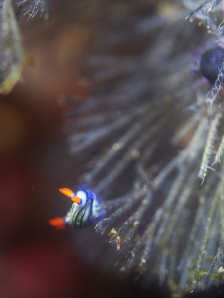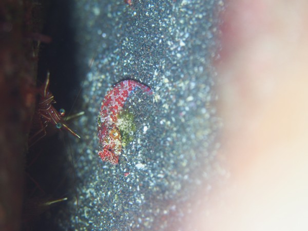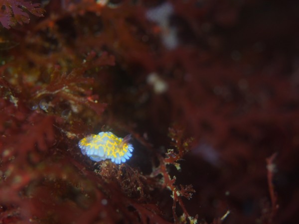 生き物はクマドリカエルアンコウ、オオモンカエルアンコウ、イロカエルアンコウ、ベニカエルアンコウ、ニシキフウライウオ、カミソリウオ、ウミテング、ハチジョウタツ、タカクラタツ、ミジンベニハゼ、ネジリンボウ、ヒレナガネジリンボウ、ミホノハゴロモハゼ、ゲッコウスズメダイ、ハダカハオコゼ、イッテンアカタチ、ニゲミズチンアナゴ、セトミノカサゴ、ジョーフィッシュsp、フタイロハナゴイ、ムラモミジハナダイ、ツノザヤウミウシ、ウデフリツノザヤウミウシ、カンナツノザヤウミウシ、ミアミラウミウシ、エボシカクレエビsp、トガリモエビ、キサンゴカクレエビ、キサンゴカクレエビsp、フィコカリス・シムランス等の確認と情報がありました。