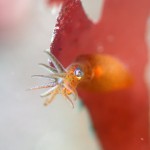 生き物はクマドリカエルアンコウ、オオモンカエルアンコウ、イロカエルアンコウ、ベニカエルアンコウ、ニシキフウライウオ、カミソリウオ、ウミテング、ハチジョウタツ、ミジンベニハゼ、ヒレナガネジリンボウ、ミホノハゴロモハゼ、シゲハゼ、ハダカハオコゼ、イッテンアカタチ、ニゲミズチンアナゴ、フタイロハナゴイ、ゲッコウスズメダイ、ツノザヤウミウシ、ウデフリツノザヤウミウシ、カンナツノザヤウミウシ、トガリモエビ、エボシカクレエビsp、フィコカリス・シムランス等の確認と情報がありました。