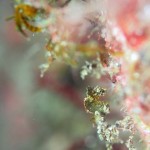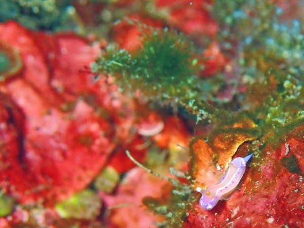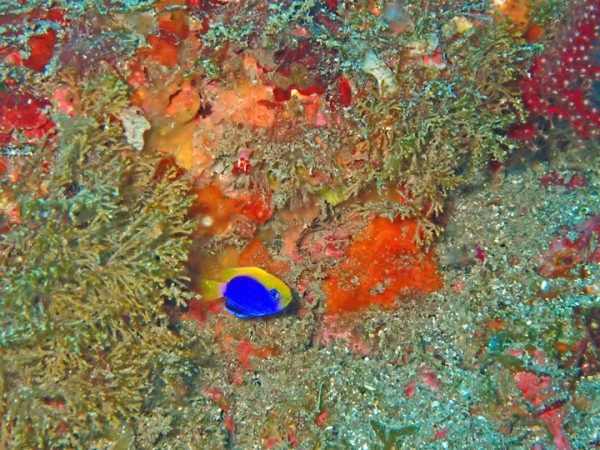 生き物はクマドリカエルアンコウ、オオモンカエルアンコウ、イロカエルアンコウ、ベニカエルアンコウ、カエルアンコウ、ハチジョウタツ、クダゴンベ、ニシキフウライウオ、ミジンベニハゼ、ネジリンボウ、ヒレナガネジリンボウ、シゲハゼ、ツバメクサハゼ、イッテンアカタチ、ジョーフィッシュsp、ハダカハオコゼ、ニゲミズチンアナゴ、フタイロハナゴイ、ホカケハナダイ、セナキルリスズメダイ、ツノザヤウミウシ、カンナツノザヤウミウシ、ウデフリツノザヤウミウシ、ジュッテンイロウミウシ、ボブサンウミウシ、トガリモエビ、エボシカクレエビsp、アカホシカクレエビ、ヨコシマエビ、フィコカリス・シムランス等の確認と情報がありました。