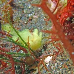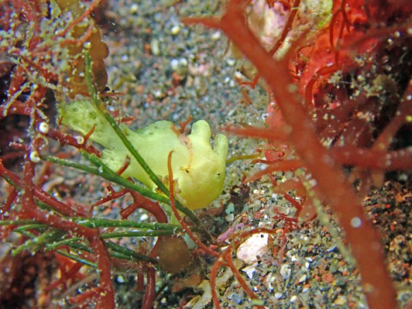 生物はクマドリカエルアンコウ、イロカエルアンコウ、オオモンカエルアンコウ、ヒレナガネジリンボウ、ネジリンボウ、ミジンベニハゼ、ミホノハゴロモハゼ、ニゲミズチンアナゴ、ハチジョウタツ、カンナツノザヤウミウシ、ツノザヤウミウシ、クロヘリアメフラシ、トガリモエビ、アヤトリカクレエビ、フィコカリス・シムランス等確認と情報がありました。