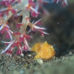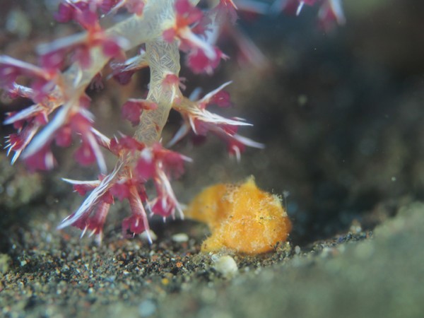 生き物はクマドリカエルアンコウ、オオモンカエルアンコウ、イロカエルアンコウ、ベニカエルアンコウ、カエルアンコウ、ハチジョウタツ、ウミテング、ミジンベニハゼ、ネジリンボウ、ヒレナガネジリンボウ、ミホノハゴロモハゼ、ツバメクサハゼ、ヒレナガカサゴ幼魚、メイタガレイ幼魚、ホウボウ幼魚、インドアカタチ、スミツキアカタチ、イッテンアカタチ、ニゲミズチンアナゴ、ヒメアゴアマダイ?、アゴアマダイsp×4、ホカケハナダイ、キンギョハナダイ(色彩変異)、ツノザヤウミウシ、カンナツノザヤウミウシ、ウデフリツノザヤウミウシ、トガリモエビ、エボシカクレエビsp、アヤトリカクレエビ、フィコカリス・シムランス等の確認と情報がありました。