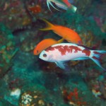 生物はクマドリカエルアンコウ、イロカエルアンコウ、オオモンカエルアンコウ、カエルアンコウ、ヒレナガネジリンボウ、ネジリンボウ、ミジンベニハゼ、ミホノハゴロモハゼ、クダゴンベ、デイゴハナダイ、ホカケハナダイ、キンギョハナダイ(色彩変異)、バラナガハナダイ、モラモミジハナダイ、ニゲミズチンアナゴ、フタイロハナゴイ、クダゴンベ、ヒレナガカサゴ幼魚、メイタガレイ幼魚、レンテンヤッコ、タテジマヤッコ、バラハタ、ハチジョウタツ、アゴアマダイ属の一種、ニラミアマダイ、ウデフリツノザヤウミウシ、カンナツノザヤウミウシ、ツノザヤウミウシ、オセミズタマウミウシ、フトウネオトメウミウシ、カナメイロウミウシ、フィコカリス・シムランス、トガリモエビ、エボシカクレエビ等確認と情報がありました。