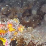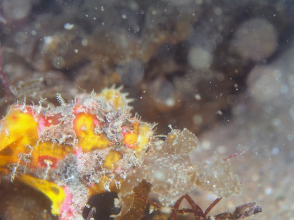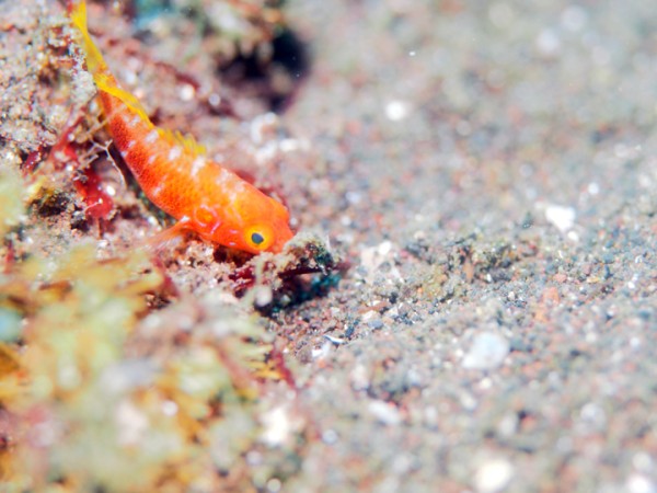 生き物はクマドリカエルアンコウ、オオモンカエルアンコウ、イロカエルアンコウ、ベニカエルアンコウ、カエルアンコウ、ハチジョウタツ、オオウミウマ、ウミテング、ミジンベニハゼ、ミホノハゴロモハゼ、ツバメクサハゼ、イサゴハゼ、オキナワハゼ、フタイロハナゴイ、ホカケハナダイ、キンギョハナダイ色彩変異、スミレナガハナダイ、オシャレハナダイ、オガサワラカサゴ、ヒレナガカサゴ、メイタガレイ、アマミスズメダイ、ニゲミズチンアナゴ、ツノザヤウミウシ、カンナツノザヤウミウシ、ウデフリツノザヤウミウシ、ヨコシマエビ、ウミウシカクレエビ、サンゴヒメエビ等の確認と情報がありました。
