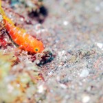 今日の天候は晴れ。風は昨晩から南西の風が強く吹き、外海は潜水禁止。湾内・先端も表層で流れがありました。水温は16~17℃、透視度は10~15mで良好です。