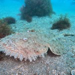 こんにちは、まいです!今日の天気は晴れ。風は南東の風が微風程度で全ポイント潜水可能でしたが、先端は時間により強い流れがあったようです。水温は16~17℃、透視度は湾内5~7m、外海・先端は8~12m程でした。今日はゲスト様がキアンコウを発見、その後1~2時間ほどは同じ場所にいてくれたようですが、徐々に移動していきました。