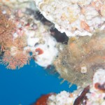 こんにちは、まいです!今日の天気は曇り。風は南西の風が午後からやや吹き、外海は前日のウネリも残っており午後からはウネリ大で潜水禁止としました。湾内・先端は問題なく潜水可能でした。水温は22~24℃、透視度は湾内2~10m、外海・先端で3~15mと下の方は青い水でした。