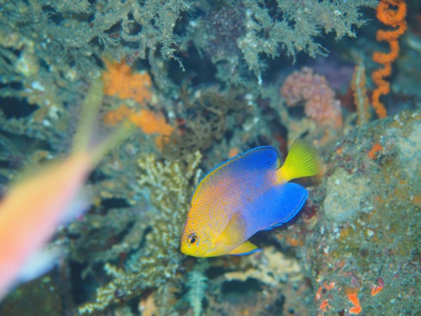 生物はオオモンカエルアンコウ、イロカエルアンコウ、ベニカエルアンコウ、ハナオコゼ、ヒレナガネジリンボウ、ネジリンボウ、オキナワベニハゼ、クダゴンベ、ハナゴンべ、スジハナダイ、サクラダイ、ナガハナダイ、ケラマハナダイ、シロボシスズメダイ、ハダカハオコゼ、カミソリウオ、ニシキフウライウオ、ニゲミズチンアナゴ、チンアナゴ、レンテンヤッコ、クサモチアメフラシ、トガリモエビ、サガミツノメエビ、イソコンペイトウガニ等確認と情報がありました。