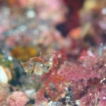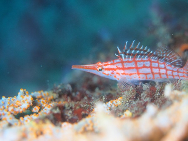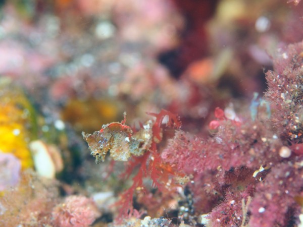 生き物はアオウミガメ、クマドリカエルアンコウ、オオモンカエルアンコウ、イロカエルアンコウ、ベニカエルアンコウ、カエルアンコウ、ニシキフウライウオ、カミソリウオ、ウミテング、オオウミウマ、ハチジョウタツ、アマミスズメダイ、ネジリンボウ、ヒレナガネジリンボウ、オニハゼsp、ハタタテハゼ、ホカケハナダイ、フタイロハナゴイ、クダゴンベ、チンアナゴ、ニゲミズチンアナゴ、アジアコショウダイ、クサモチアメフラシ、ヨコシマエビ、ウチワエビ等の確認と情報がありました。