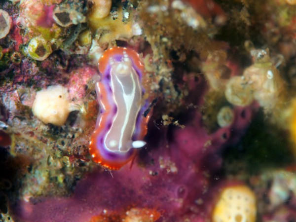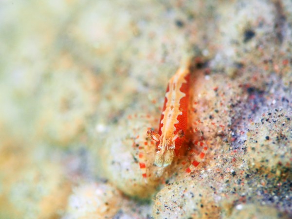生き物はクマドリカエルアンコウ、ベニカエルアンコウ、カエルアンコウ、ハナオコゼ、オオウミウマ、ウミテング、カミソリウオ、ニシキフウライウオ、ネジリンボウ、ヒレナガネジリンボウ、オニハゼsp、ヒメオニハゼ、ミホノハゴロモハゼ、チンアナゴ、ニゲミズチンアナゴ、マツカサウオ、ムラモミジハナダイ、クサモチアメフラシ、セトイロウミウシ、ヨコシマエビ、ウミカラマツエビ、ペリクリメネス・ダルタニコラ等の確認と情報がありました。