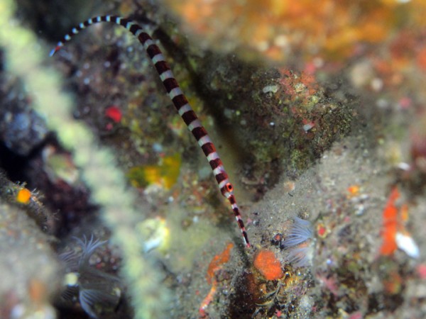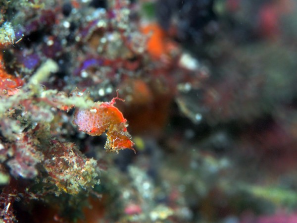生き物はクマドリカエルアンコウ、オオモンカエルアンコウ、ベニカエルアンコウ、カエルアンコウ、ハナオコゼ、ハチジョウタツ、オオウミウマ、ニシキフウライウオ、カミソリウオ、カスミオイランヨウジ、ネジリンボウ、ヒレナガネジリンボウ、ハタタテハゼ、オニハゼsp、イナセギンポ、ニラミギンポ、ツユベラ幼魚、ホカケハナダイ、クダゴンベ、トビエイ群れ、サカタザメ、オトヒメウミウシ、アカホシカクレエビ、ラオメネス・コルヌトゥス等の確認と情報がありました。