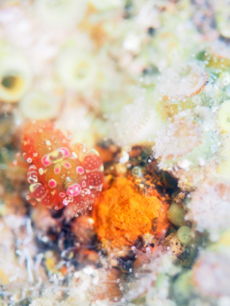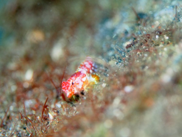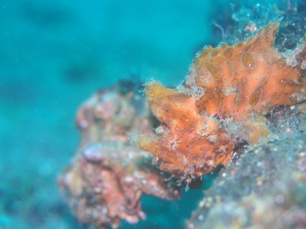 生き物はクマドリカエルアンコウ、オオモンカエルアンコウ、ベニカエルアンコウ、カエルアンコウ、ハナオコゼ、ハチジョウタツ、オオウミウマ、ニシキフウライウオ、カミソリウオ、ウミテング、クダゴンベ、チンアナゴ、ニゲミズチンアナゴ、ミヤケテグリ幼魚、デルタスズメダイ、オジロスズメダイ、ネジリンボウ、ヒレナガネジリンボウ、オニハゼsp、ハタタテハゼ、ヨコシマエビ、ホヤカクレエビ等の確認と情報がありました。