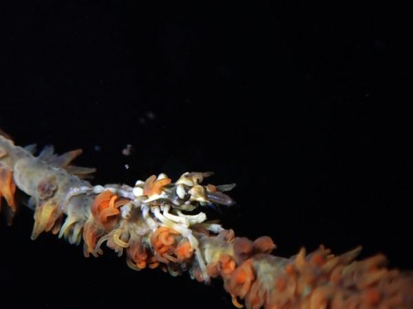 生物はオオモンカエルアンコウ、ヒレナガネジリンボウ、ネジリンボウ、ミジンベニハゼ、オキナワベニハゼ、ミヤケテグリ幼魚、クダゴンベ、ベニハナダイ、ケラマハナダイ、ハチジョウタツ、テングノオトシゴ、ニゲミズチンアナゴ、チンアナゴ、ハクセンアカホシカクレエビ、オドリカクレエビ、イボイソバナガニ、オセナガムシウミウシ等確認と情報がありました。