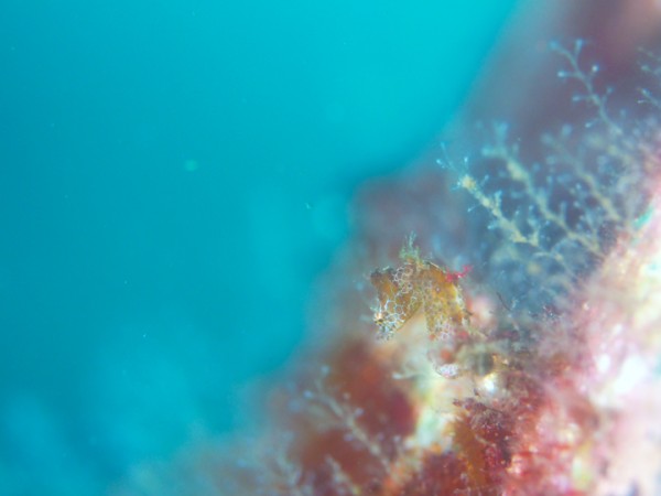 生き物はオオモンカエルアンコウ、ハチジョウタツ、イバラタツ、テングノオトシゴ、ミジンベニハゼ、ネジリンボウ、ヒレナガネジリンボウ、チンアナゴ、ニゲミズチンアナゴ、クダゴンベ、ベニハナダイ、タマガワコヤナギウミウシ、コナフキウミウシ、オドリカクレエビ、ビシャモンエビ、フィコカリス・シムランス等の確認と情報がありました。