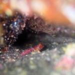 生き物はオオモンカエルアンコウ、ニシキフウライウオ幼魚、イバラタツ、ミジンベニハゼ、ネジリンボウ、ヒレナガネジリンボウ、ミヤケテグリ、チンアナゴ、ニゲミズチンアナゴ、ツバクロエイ、クロスジリュウグウウミウシ、ミアミラウミウシ、タマガワコヤナギウミウシ、コナフキウミウシ、オドリカクレエビ、ビシャモンエビ、アカホシカクレエビ等の確認と情報がありました。
