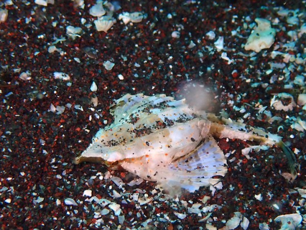 生き物はオオモンカエルアンコウ、ニシキフウライウオ幼魚、イバラタツ、オオウミウマ、ミジンベニハゼ、ネジリンボウ、ヒレナガネジリンボウ、ミヤケテグリ、チンアナゴ、ニゲミズチンアナゴ、テングノオトシゴ、カゴシマオコゼ、ミアミラウミウシ、コヤナギウミウシ、コナフキウミウシ、オドリカクレエビ、イソギンチャクエビ、ビシャモンエビ、アカホシカクレエビ等の確認と情報がありました。