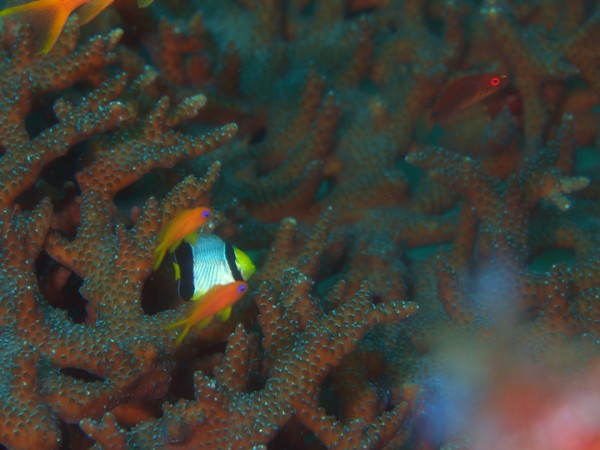 生き物はアオウミガメ、オオモンカエルアンコウ、ニシキフウライウオ、カミソリウオ、イバラタツ、テングノオトシゴ、ウミテング、ミジンベニハゼ、ネジリンボウ、ヒレナガネジリンボウ、ヒメオニハゼ、ヤリカタギ、クダゴンベ、キツネベラ、センテンイロウミウシ、クロスジリュウグウウミウシ、ウデフリツノザヤウミウシ、ウミウシカクレエビ、テヅルモヅルエビ、アカホシカクレエビ、アヤトリカクレエビ、オドリカクレエビ等の確認と情報がありました。