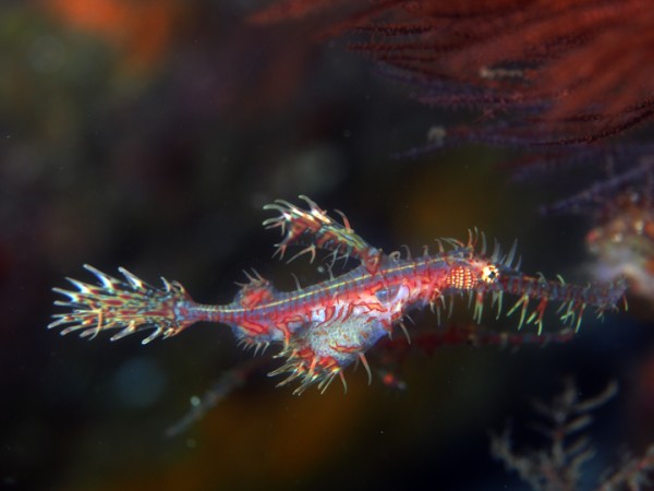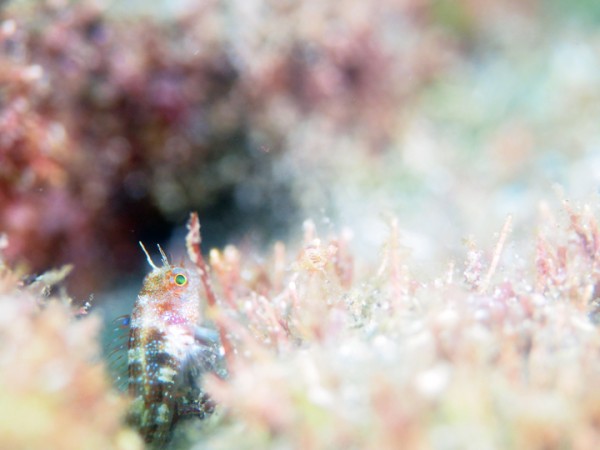 生き物はオオモンカエルアンコウ、ニシキフウライウオ、カミソリウオ、ウミテング、テングノオトシゴ、ミジンベニハゼ、ネジリンボウ、ヒレナガネジリンボウ、ササハゼ、ホタルビオニハゼ、チンアナゴ、ニゲミズチンアナゴ、ヒレグロスズメダイ、ミヤケテグリ、クロスジリュウグウウミウシ、ミチヨミノウミウシ、オドリカクレエビ、アカホシカクレエビ、ビシャモンエビ、フィコカリス・シムランス等の確認と情報がありました。