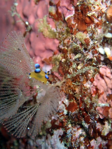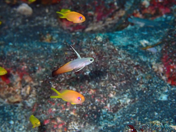 生物はアオウミガメ、クマドリカエルアンコウ、オオモンカエルアンコウ、アケボノハゼ、ハタタテハゼ、アカハチハゼ、ニシキフウライウオ、カミソリウオ、ヒレグロスズメダイ、テングノオトシゴ、ウミテング、オオウミウマ、アカタチ幼魚、アゴアマダイ属の一種、ウデフリツノザヤウミウシ、ゴマフビロードウミウシ、ビシャモンエビ、イボイソバナガニ、オドリカクレエビ等確認と情報がありました。