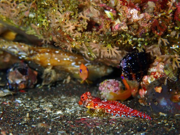 生物はアオウミガメ、ミジンベニハゼ、ヒレナガネジリンボウ、ネジリンボウ、ホタルビオニハゼ、オキナワベニハゼ、ミヤケテグリ幼魚、テングノオトシゴ、ウミテング、オオウミウマ、マツカサウオ幼魚、ヒレグロスズメダイ、ニシキフウライウオ、カミソリウオ、アゴアマダイ属の一種、ニゲミズチンアナゴ、チンアナゴ、ゴマフビロードウミウシ、ビシャモンエビ、イボイソバナガニ等確認と情報がありました。