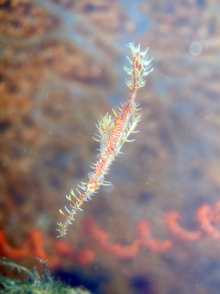 生き物はアオウミガメ、オオモンカエルアンコウ、ニシキフウライウオ、カミソリウオ、ウミテング、テングノオトシゴ、オオウミウマ、ハチジョウタツ、ミジンベニハゼ、ネジリンボウ、ヒレナガネジリンボウ、ハタタテハゼ、アケボノハゼ、アカハチハゼ、ハチマキダテハゼ、ホタルビオニハゼ、ヒレグロスズメダイ、イチモンスズメダイ、オジロスズメダイ、チンアナゴ、ニゲミズチンアナゴ、ジョーフィッシュsp、クダゴンベ、ウデフリツノザヤウミウシ、サガミリュウグウウミウシ、クロスジリュウグウウミウシ、オドリカクレエビ、キミシグレカクレエビ、キサンゴカクレエビ等の確認と情報がありました。