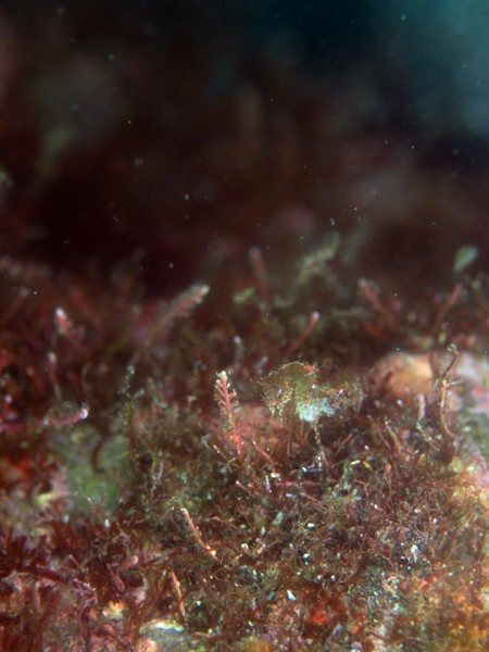 生き物はオオモンカエルアンコウ、ニシキフウライウオ、カミソリウオ、カミソリウオsp、ウミテング、テングノオトシゴ、イバラタツ、ハチジョウタツ、ミジンベニハゼ、ネジリンボウ、ヒレナガネジリンボウ、ハチマキダテハゼ、ホタルビオニハゼ、チンアナゴ、ニゲミズチンアナゴ、カンムリベラ、ヒレグロスズメダイ、ゴマフビロードウミウシ、コナフキウミウシ、タマガワコヤナギウミウシ、オドリカクレエビ、キサンゴカクレエビ、キミシグレカクレエビ、ウズラカクレモエビ、イボイソバナガニ、イソコンペイトウガニ等の確認と情報がありました。