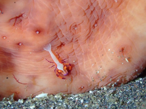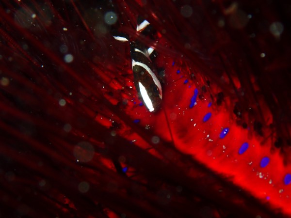 生き物はオオモンカエルアンコウ、ニシキフウライウオ、カミソリウオ、ウミテング、テングノオトシゴ、オオウミウマ、イバラタツ、ハチジョウタツ、アケボノハゼ、ハタタテハゼ、ネジリンボウ、ヒレナガネジリンボウ、ハチマキダテハゼ、アカハチハゼ、チンアナゴ、ニゲミズチンアナゴ、イチモンスズメダイ、ヒレグロスズメダイ、サガミリュウグウウミウシ、クロスジリュウグウウミウシ、オドリカクレエビ、ウミウシカクレエビ、ビシャモンエビ、キミシグレカクレエビ、キサンゴカクレエビ等の確認と情報がありました。