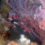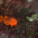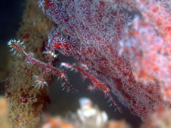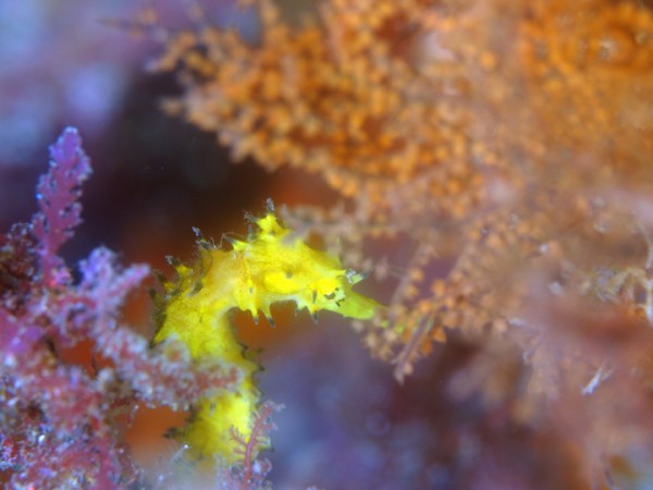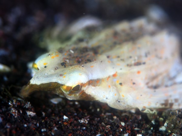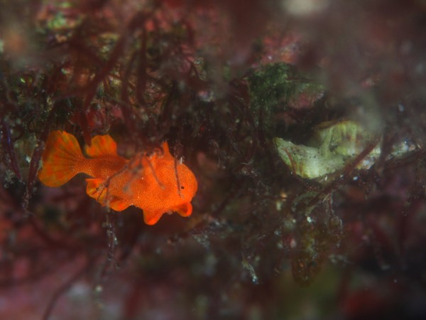 生き物はクマドリカエルアンコウ、イロカエルアンコウ、オオモンカエルアンコウ、ニシキフウライウオ、カミソリウオ、カミソリウオsp、ウミテング、テングノオトシゴ、ハチジョウタツ、イバラタツ、ネジリンボウ、ヒレナガネジリンボウ、ハチマキダテハゼ、ホタルビオニハゼ、アカハチハゼ、フトスジイレズミハゼ、チンアナゴ、ニゲミズチンアナゴ、ヒレグロスズメダイ、イチモンスズメダイ、マツカサウオ、ジョーフィッシュsp、イッテンアカタチ、クロスジリュウグウウミウシ、サガミリュウグウウミウシ、ゴマフビロードウミウシ、オドリカクレエビ、トガリモエビ、エボシカクレエビsp、キサンゴカクレエビ、キミシグレカクレエビ等の確認と情報がありました。