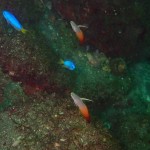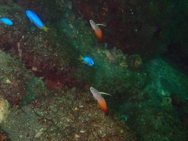 生物はクマドリカエルアンコウ、オオモンカエルアンコウ、ヒレナガネジリンボウ、ネジリンボウ、ハタタテハゼ、ニシキフウライウオ、カミソリウオ、カミソリウオSP、イバラタツ、オオウミウマ、ハチジョウタツ、ニゲミズチンアナゴ、チンアナゴ、タテジマヤッコ、オジロスズメダイ、イチモンスズメダイ、デルタスズメダイ、セナキルリスズメダイ、ゴマフビロードウミウシ、サガミリュウグウウミウシ、フィコカリス・シムランス、エボシカクレエビ、キサンゴカクレエビ、オドリカクレエビ、イボイソバナガニ等確認と情報がありました。