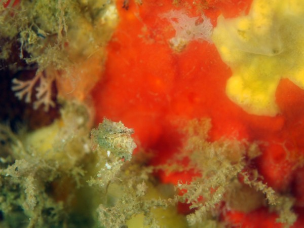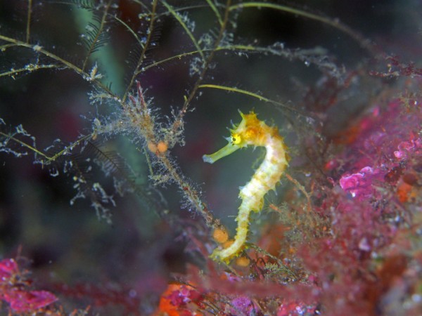 生き物はクマドリカエルアンコウ、オオモンカエルアンコウ、ニシキフウライウオ、カミソリウオ、ウミテング、テングノオトシゴ、イバラタツ、ハチジョウタツ、ネジリンボウ、ヒレナガネジリンボウ、アカハチハゼ、ヒレグロスズメダイ、イッテンアカタチ、ジョーフィッシュsp、ゴマフビロードウミウシ、ウデフリツノザヤウミウシ、クロスジリュウグウウミウシ、サガミリュウグウウミウシ、ミアミラウミウシ、キミシグレカクレエビ、キサンゴカクレエビ、オドリカクレエビ、ウミウシカクレエビ、アザミカクレモエビ、ウズラカクレモエビ、フィコカリス・シムランス等の確認と情報がありました。