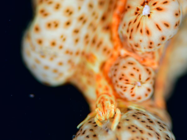 生き物はクマドリカエルアンコウ、オオモンカエルアンコウ、ニシキフウライウオ、カミソリウオ、ウミテング、テングノオトシゴ、イバラタツ、ハチジョウタツ、ネジリンボウ、ヒレナガネジリンボウ、ヒレグロスズメダイ、イッテンアカタチ、ジョーフィッシュsp、ゴマフビロードウミウシ、ウデフリツノザヤウミウシ、アヤトリカクレエビ、キミシグレカクレエビ、エボシカクレエビ、キサンゴカクレエビ、オドリカクレエビ、ウミウシカクレエビ、アザミカクレモエビ、ウズラカクレモエビ、トサカクレエビ、フィコカリス・シムランス等の確認と情報がありました。