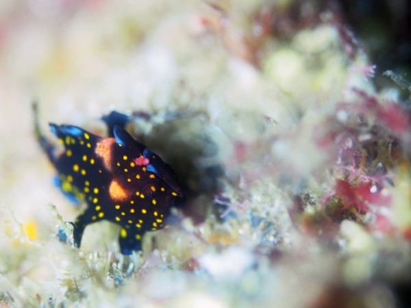 生き物はクマドリカエルアンコウ、オオモンカエルアンコウ、ニシキフウライウオ、カミソリウオ、ウミテング、テングノオトシゴ、ハチジョウタツ、ネジリンボウ、ヒレナガネジリンボウ、ハタタテハゼ、チンアナゴ、ニゲミズチンアナゴ、カンムリベラ、ウデフリツノザヤウミウシ、クロスジリュウグウウミウシ、サガミリュウグウウミウシ、キサンゴカクレエビ、キミシグレカクレエビ、オドリカクレエビ、アカホシカクレエビ、アザミカクレモエビ、ウズラカクレモエビ、フィコカリス・シムランス等の確認と情報がありました。