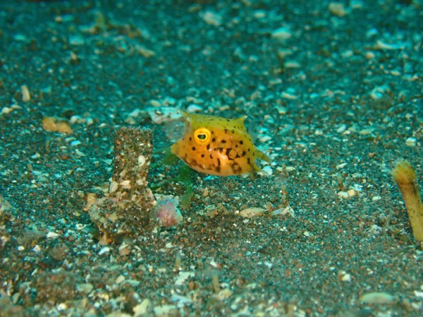 生き物はイロカエルアンコウ、オオモンカエルアンコウ、ニシキフウライウオ、カミソリウオ、ウミテング、テングノオトシゴ、ハチジョウタツ、イバラタツ、ミジンベニハゼ、ネジリンボウ、ヒレナガネジリンボウ、フタスジリュウキュウスズメダイ、ヒレグロスズメダイ、イッテンアカタチ、ツノザヤウミウシ、カンナツノザヤウミウシ、オドリカクレエビ、サガミツノメエビ、キサンゴカクレエビ、キミシグレカクレエビ、ヨコシマエビ、トガリモエビ、カイカムリ等の確認と情報がありました。