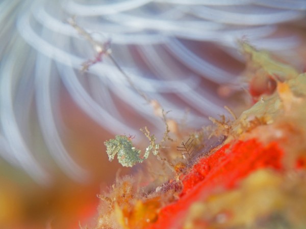 生き物はアンコウ、オオモンカエルアンコウ、イロカエルアンコウ、ニシキフウライウオ、カミソリウオ、ウミテング、テングノオトシゴ、タカクラタツ、ハチジョウタツ、ミジンベニハゼ、イッテンアカタチ、ツノザヤウミウシ、カンナツノザヤウミウシ、ウデフリツノザヤウミウシ、オセミズタマウミウシ、セトリュウグウウミウシ、クロスジリュウグウウミウシ、サガミリュウグウウミウシ、マッチボウミノウミウシ、ボブサンウミウシ、オドリカクレエビ、キサンゴカクレエビ、アザミカクレモエビ、ウズラカクレモエビ、フィコカリス・シムランス等の確認と情報がありました。