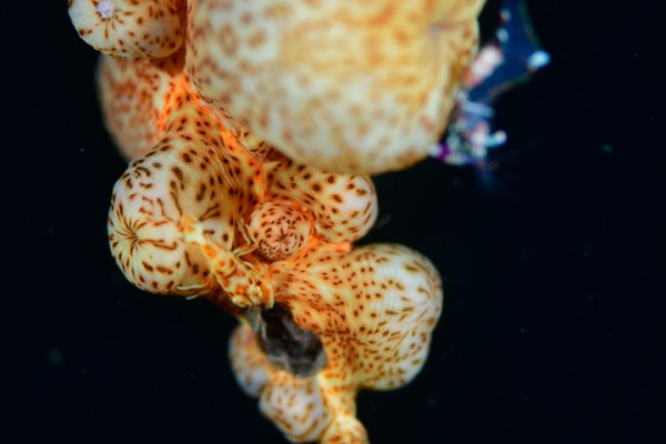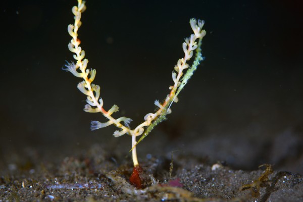 生物はオオモンカエルアンコウ、イロカエルアンコウ、ヒレナガネジリンボウ、ネジリンボウ、ミジンベニハゼ、ミホノハゴロモハゼ、シュンカンハゼ、ニシキフウライウオ、カミソリウオ、ニゲミズチンアナゴ、タカクラタツ、オオウミウマ、イバラタツ、ハチジョウタツ、テングノオトシゴ、ウミテング、マツカサウオ、ツノザヤウミウシ、ゴマフビロードウミウシ、トガリモエビ、ハクセンアカホシカクレエビ、トサカクレエビ、アヤトリカクレエビ、エボシカクレエビ、カイカムリ等確認と情報がありました。