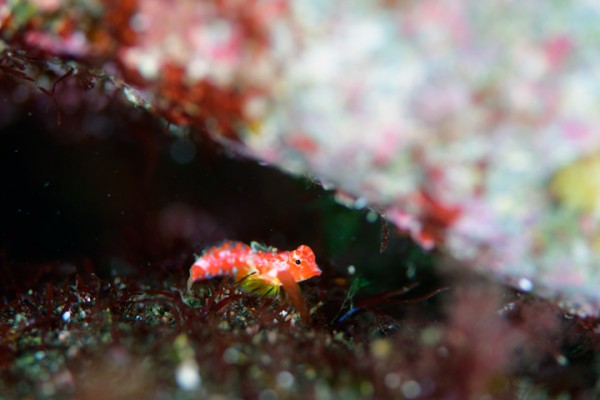 生物はオオモンカエルアンコウ、イロカエルアンコウ、ミジンベニハゼ、ヒレナガネジリンボウ、ネジリンボウ、シュンカンハゼ、ニシキフウライウオ、カミソリウオ、アゴアマダイ属の一種、ミヤケテグリ幼魚、ウミテング、テングノオトシゴ、タカクラタツ、オオウミウマ、イバラタツ、ハチジョウタツ、カンナツノザヤウミウシ、ツノザヤウミウシ、ゴマフビロードウミウシ、エボシカクレエビ、オドリカクレエビ、トサカクレエビ、アヤトリカクレエビ、トガリモエビ、フィコカリス・シムランス等確認と情報がありました。