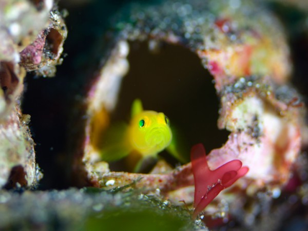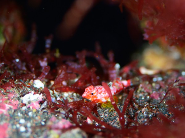 生物はオオモンカエルアンコウ、イロカエルアンコウ、ミジンベニハゼ、ヒレナガネジリンボウ、ネジリンボウ、シュンカンハゼ、ニシキフウライウオ、カミソリウオ、アゴアマダイ属の一種、ミヤケテグリ幼魚、ウミテング、テングノオトシゴ、オオウミウマ、イバラタツ、ハチジョウタツ、カンナツノザヤウミウシ、ツノザヤウミウシ、ゴマフビロードウミウシ、エボシカクレエビ、オドリカクレエビ、トサカクレエビ、アヤトリカクレエビ、トガリモエビ、フィコカリス・シムランス等確認と情報がありました。