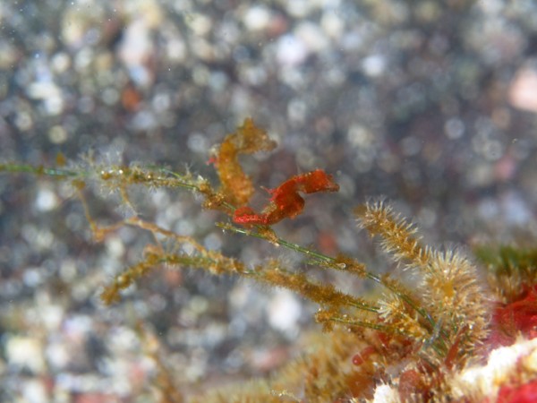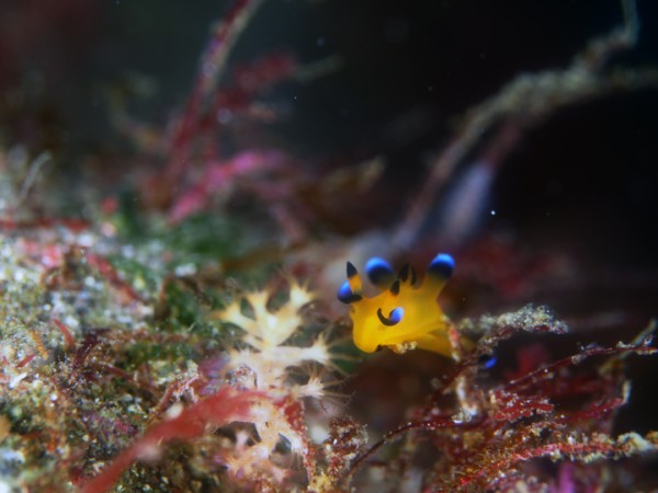 生き物はオオモンカエルアンコウ、イロカエルアンコウ、ハチジョウタツ×5、イバラタツ、タカクラタツ、ウミテング、テングノオトシゴ、カスザメ、ミジンベニハゼ、マトウダイ、イッテンアカタチ、ウデフリツノザヤウミウシ、ツノザヤウミウシ、オセミズタマウミウシ、ミノウミウシsp、ミアミラウミウシ、オドリカクレエビ、キサンゴカクレエビ、アザミカクレモエビ、ウズラカクレモエビ、アカホシカクレエビ、フィコカリス・シムランス等の確認と情報がありました。