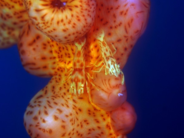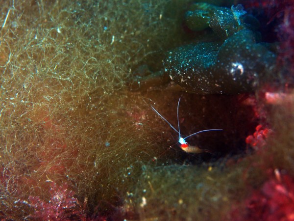 生き物はオオモンカエルアンコウ、イロカエルアンコウ、ベニカエルアンコウ、エナガカエルアンコウ、カエルアンコウ、ハチジョウタツ、タカクラタツ、ウミテング、テングノオトシゴ、ミジンベニハゼ、イッテンアカタチ、ツノザヤウミウシ、カンナツノザヤウミウシ、オドリカクレエビ、キサンゴカクレエビ、アヤトリカクレエビ、エリマキエビ、ハナイカ等の確認と情報がありました。