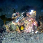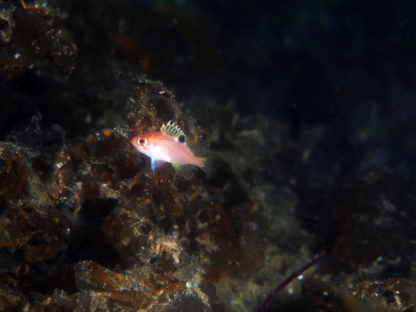 生き物はオオモンカエルアンコウ、ベニカエルアンコウ、カエルアンコウ、ハチジョウタツ、テングノオトシゴ、アマクサヨウジ、ミジンベニハゼ、アカイサキ、スミツキハナダイ、イッテンアカタチ、ヒレナガカサゴ、エボシカサゴ、メイタガレイ、ダルマオコゼ、アゴアマダイ属の一種、ツノザヤウミウシ、クチナシツノザヤウミウシ、ゴマフビロードウミウシ、ゴマフビロードウミウシsp、オドリカクレエビ、トガリモエビ、ハクセンアカホシカクレエビ、ヨコシマエビ等の確認と情報がありました。