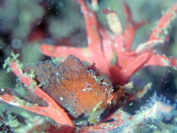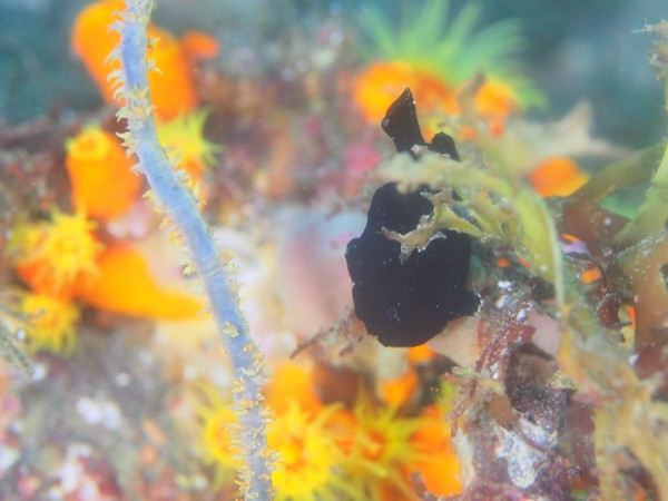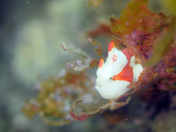 生き物はクマドリカエルアンコウ、オオモンカエルアンコウ、イロカエルアンコウ、ベニカエルアンコウ、ヒメヒラタカエルアンコウ、オオウミウマ、ハチジョウタツ、カミソリウオ、ニシキフウライウオ、ネジリンボウ、ヒレナガネジリンボウ、オニハゼsp、チンアナゴ、ニゲミズチンアナゴ、サカタザメ、トガリモエビ、ヨコシマエビ等の確認と情報がありました。
